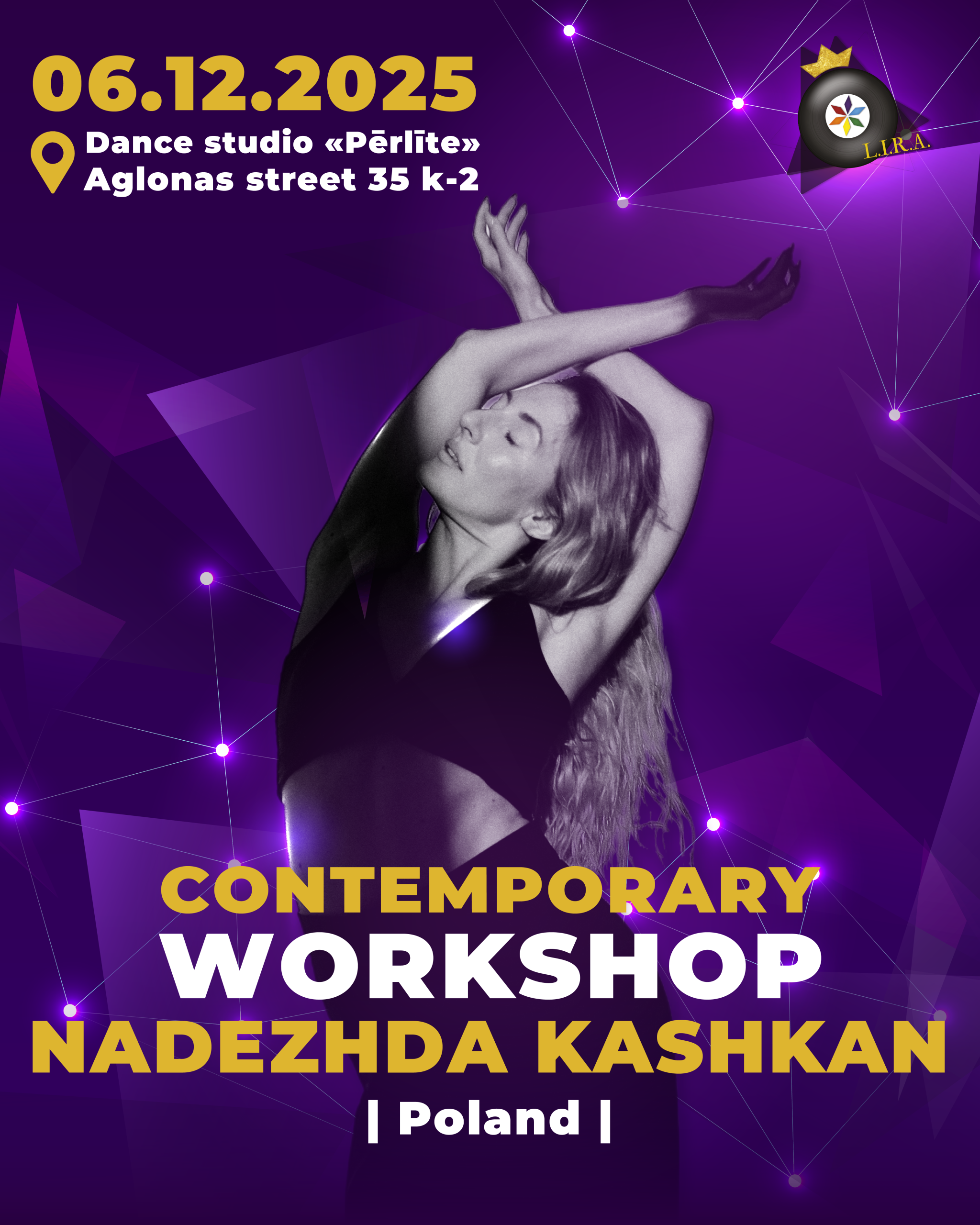 Pievienojies iedvesmojošai 1,5 stundu laikmetīgās dejas meistarklasei ar talantīgo Nadiu Kašanu!